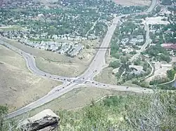 Intersection of SH 93, SH 58 and US 6 in Golden as seen from Mount Zion