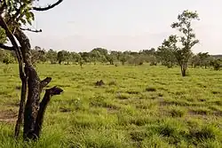 The Comoé National Park (French: Parc national de la Comoé) is a Biosphere Reserve and UNESCO World Heritage Site in the Zanzan and Savanes districts of north-eastern Ivory Coast. It is the largest protected area in West Africa, with an area of 11,500 square kilometers (4,400 sq mi), and ranges from the humid Guinea savanna to the dry Sudanian zone.[2] This steep climatic north–south gradient allows the park to harbor a multitude of habitats with a remarkable diversity of life. Some animal and plant species even find their last sanctuary in some of the different savanna types, gallery forests, riparian grasslands, rock outcrops, or forest islands.