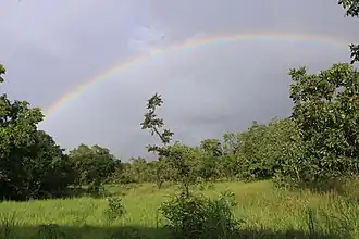 Comoé National Park savannah with rainbow