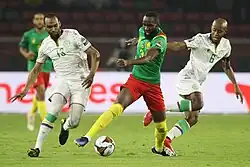 The Comoros are in Group C of the 2021 Africa Cup of Nations, which takes place in January and February 2022 in Cameroon. Their first match sees them losing to Gabon 1–0.[1] The second match also ended with a 2–0 defeat against Morocco,[2] despite a noteworthy match by goalkeeper Salim Ben Boina, elected man of the match.[3] The third match opposes the Comorians to Ghana.[4] This meeting, where Salim Ben Boina is out through injury, ends with a historic victory for the Comorians 3–2, including 2 goals from Ahmed Mogni, eliminating Ghana, and allowing the Cœlacanthes to finish third in the group.