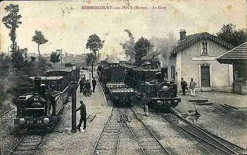 The Compagnie Meusienne de Chemins de Fer (colloquially Le Meusien) operated from 1888 to 1922 a 203 km (130 mi) long metre gauge (1,000 mm (3 ft 3+3⁄8 in)) rail network in the French Département Meuse. Its most westerly branch was built by the Compagnie des Chemins de Fer d'Intérêt Local de la Meuse and commissioned section by section since 1878. The Société Générale des Chemins de Fer Économiques took over the network in 1922 and operated it until decline and closure between 1929 and 1938.