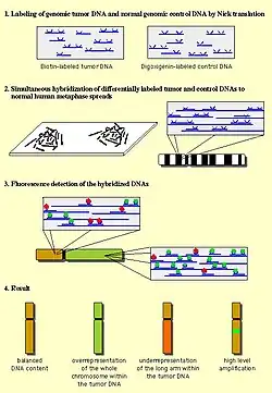 - ^ a b c Forozan F, Karhu R, Kononen J, Kallioniemi A, Kallioniemi OP (1997). "Genome screening by comparative genomic hybridization". Trends Genet. 13 (10): 405–409. doi:10.1016/s0168-9525(97)01244-4. PMID 9351342.