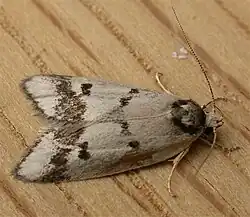 Caterpillars of Compsotropha selenias are off-white and live in shelters constructed from leaves and silk.[1]