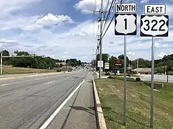 US 1 northbound and US 322 eastbound in Concord Township