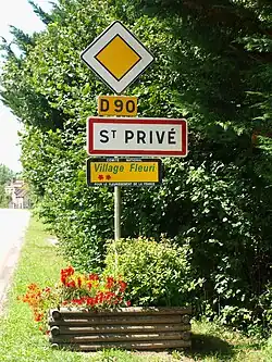 The Concours des villes et villages fleuris (French pronunciation: [kɔ̃kuʁ de vil e vilaʒ flœʁi], 'Competition of cities and villages in bloom') is an annual French contest. It aims to encourage communes to adopt and implement policies improving the quality of life of their inhabitants and enhancing their attractiveness to visitors through the provision and maintenance of green spaces and the enhancement of their natural environments. Successful communes are awarded the right to display a badge (one to four flowers) on road signs and in other local promotional material.