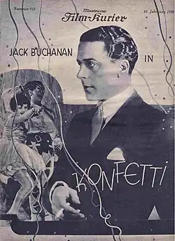 Confetti is a 1927 British silent drama film directed by Graham Cutts and starring Jack Buchanan, Annette Benson and Sydney Fairbrother.[2] A sound version was released in 1928. While the sound version had no audible dialog, it featured a synchronized musical score with sound effects using the sound-on-disc Vitaphone process. The silent version had its trade show exhibition in December 1927 which the sound version had its premiere in October of 1928.[3] The film was shot at Gainsborough Pictures' Islington studios.