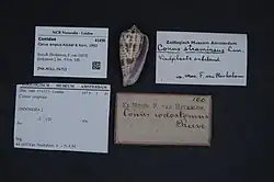 - ^ Filmer R.M. (2011) Taxonomic review of the Conus spectrum, Conus stramineus and Conus collisus complexes (Gastropoda - Conidae). Part II: The Conus stramineus complex. Visaya 3(4): 4-66. (November 2011)