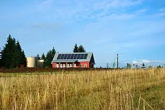 Amenities at the park include gardens, a nature center building, parking, bike racks, a children's playground, and 3.5 miles (5.6 km) of gravel trails.[1][4] The nature center, called the Nature House, is used for educational programs and includes rest rooms, plus it is partly powered by solar panels.[3][4] Birds at the park include the red-tailed hawk, great horned owl, bald eagle, western bluebird, several sparrow species, and the olive-sided flycatcher.[3] Other animal species in the park include the northern red-legged frog, western gray squirrel, northern alligator lizard, and the rubber boa.[3] Plant life includes Oregon sunshine, meadow checkermallow, western columbine, and the endangered pale larkspur.[3]
