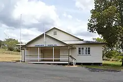 The Mahen hall was the first community hall in the district, opened in 1922 at the local Rifle Club range for an initial cost of £150, with several extensions and improvements made in the years which followed.[33] The Dalby Herald reported in 1952 some details of the history of the Mahen hall, including "The first wedding in the Cooranga North district was celebrated in the hall on November 27, 1924, being that of Miss Gladys Hopper. Johnson’s showed their first pictures in Cooranga North in the hall on May 21, 1927, the programme including North of Moonbi*. On April 20, 1950, The trustees agreed to the transfer of the Mahen Rifle Club Hall to the committee" and, "... before a piano was procured for the Mahen Hall, Mr. McQuaker invented, and made, a dulcimer, and this was used for many years.[33] *Note- the film title is probably a misprint, as Queensland's first feature length film, released in 1926, was a silent film called The Moth of Moonbi. The Mahen Hall was sold by auction on the day of the new Memorial Hall opening in late 1952, for £400 to Mr. Hugh O'Brien.[34]