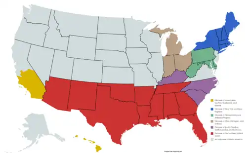 In addition to the Archdiocese of North America, there are six dioceses in the United States, serving around 213 congregations. These are: