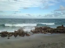 The park, which is almost 15 acres, includes approximately 2,610 feet of beach frontage (most of which is guarded) and 600 feet of intracoastal waterway frontage.[2] The most prominent feature of the beach is the natural limestone, which is part of the Atlantic Coastal Ridge.[3] These rocks, as well as the coral reefs, are inhabited by marine wildlife, including fish, sea turtles, eels, sharks and marine worms.[1][3]