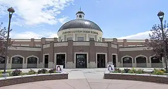Corner Canyon High School opened in 2013.[3] It was built at 12943 S. 700 East in Draper, Utah,[4] using funds from a $250 million bond approved by voters in 2010.[3] Its classroom wings are two stories tall, and it includes a lecture hall, an auditorium, a 3,300 seat gymnasium, and a football field with artificial turf. It was the first comprehensive high school in Draper, and the first new high school built by Canyons School District after it split from the Jordan District in 2009.[5] It serves the community of Draper in the southeast corner of Salt Lake County.[6]