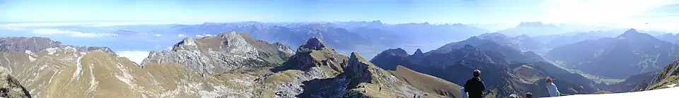 2. ^ Retrieved from Google Earth. The nearest point of higher elevation is north of the Hauts-Forts. Between the Cornettes de Bises and the Hauts-Forts lie the equally high Mont de Grange.