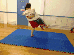 - With both hips now facing the same direction, the thrower steps with their inside leg between the throwee's legs pushing back and hooking their foot around the throwee's ankle lifting their leg to the rear.