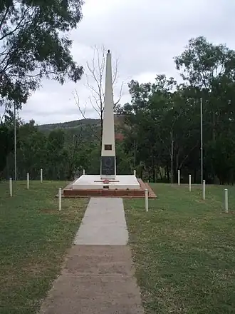 The Coronation Lamp and Boer War Memorial was erected on 26 June 1902 as part of Mount Morgan's coronation celebrations. The memorial was commissioned by the Mount Morgan Municipal Council and is thought to be designed by Arthur Jenks who, at the time, was Clerk of Works for the erection of the Mount Morgan Technical College. As well as commemorating the coronation of King Edward VII, it also honours the Mount Morgan troopers who died in the Boer War in South Africa. It originally stood at the intersection of Morgan and East Streets, and although known as the Coronation Lamp, the lamp eventually became the site of Anzac Day commemorations, the first in 1916 and also of victory celebrations at the end of the First World War.[1]
