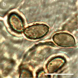 In the field, C. scoticus looks like C. trossingenensis, but the latter has small (4.5 to 5.5 by 4 to 4.5 μm), subglobose (nearly or imperfectly globe-shaped) spores.[1]