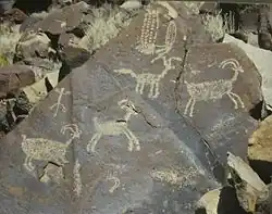 ![]() Bighorn sheep, a characteristic design at Coso | |