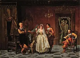 He was born in Casale Monferrato in the Piedmont and studied at the Albertina Academy until the early 1840s. At first, His work consisted mostly of historical paintings.[1] He exhibited in 1881 at Milan with a genre painting called The Kilo. In 1884, he had exhibits in Rome and Turin with a set of paintings depicting a "Monacanda" (a candidate for a monastic order): Monacanda Before Pronouncing the Vows and Monacanda, an Hour Before Taking the Monastic Clothes. He also exhibited Discovery of a Bersagliere and A Kiss of Furtive Origin.[2]