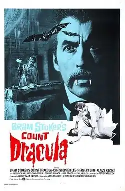 Count Dracula (German: Nachts, wenn Dracula erwacht, lit.'At night, when Dracula awakens'; also known as El Conde Dracula, Bram Stoker's Count Dracula, Il Conte Dracula) is a 1970 horror film directed and co-written by Jesús Franco, based on the novel Dracula by Bram Stoker. It stars Christopher Lee as Dracula, Herbert Lom as Van Helsing, and Klaus Kinski as Renfield, along with Fred Williams, Maria Rohm, Soledad Miranda, Paul Muller, and Jack Taylor.[6]