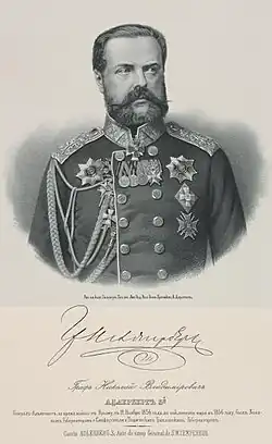 Count Nikolay Vladimirovich Adlerberg (Russian: Николай Владимирович Адлерберг; 19 May 1819 – 25 December 1892) was a Russian aristocrat who served as Councilor of State and Chamberlain in the imperial court, as well as governor of Taganrog, Simferopol and Finland.