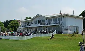 Following the sale of the ground, the facilities were redeveloped by Leander Sports and Leisure, working with Kent and Bromley London Borough Council. A new pavilion was constructed with the aim of turning the ground into a centre of excellence for sports in south-east London. The plans were backed by the Ken Livingstone, the Mayor of London at the time.[26][27] Initial plans were for Kent to return to the ground during 2001, although the first match played at the newly developed ground was in 2003.[28] As part of the development 42 flats were built on the site which is designated as Metropolitan Open Land.[4][29] Kent's matches at Beckenham were partly supported by Bromley Council from 2006.[30]