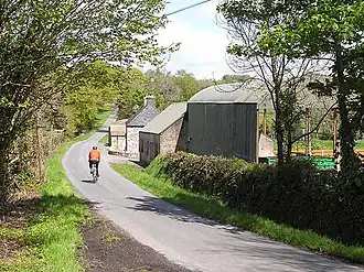 Long ago Ireland was covered in woodland,[9][10] and five great forests are traditionally said to have stood in Leitrim, with a 19th-century county survey stating- "a hundred years ago almost the whole country was one continued, undivided forest, so that from Drumshanbo to Drumkeeran, a distance of nine or ten miles, one could travel the whole way from tree to tree by branches".[11] Many of these great forests were denuded for the making of charcoal for iron works around Sliabh an Iarainn.[9] Working of the county's rich deposits of iron ore began in the 15th century and continued until the mid-18th century. Coal mining became prominent in the 19th century to the east of Lough Allen at Sliabh an Iarainn and also to the west in Arigna, on the Roscommon border. The last coal mine closed in July 1990 and there is now a visitor centre.[12] Sandstone was also quarried in the Glenfarne region.
