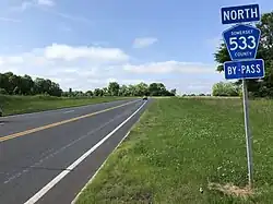 County Route 533 Spur (signed as County Route 533 Bypass) is a county highway in the U.S. state of New Jersey. The highway extends 0.4 miles (0.64 km) from Millstone Bypass (CR 514) in Millstone to River Road (CR 533) in Hillsborough. It is known as Somerset Courthouse Road. There is only one other intersection along the road besides its two endpoints, Hamilton Road just feet north of the Millstone–Hillsborough border.[4][3]