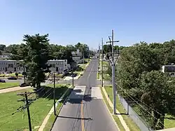 Upon crossing the Pennsauken Creek, CR 543 enters Palmyra in Burlington County and immediately comes to an interchange with Route 73. The route intersects CR 601 and turns northwest onto Public Road, passing residential and industrial areas. CR 543 crosses the River Line and immediately turns northeast onto Broad Street. Broad Street continues southwest from here towards Route 73 and is signed as a portion of CR 543. The mainline of CR 543 passes homes, running immediately north of the railroad tracks. The road enters the commercial downtown of Palmyra and crosses CR 607 near the Palmyra Station of the River Line before reaching the CR 602 junction. The route gains a center left-turn lane and enters residential areas again and crosses into Riverton at the Elm Avenue intersection, coming to the CR 603 junction near the Riverton Station. After crossing the Pomeston Creek, CR 543 enters Cinnaminson Township and becomes Saint Mihiel Drive, running through residential and industrial areas, passing the Cinnaminson Station. The road passes more industry as a four-lane undivided road, continuing into Delran Township, where it passes a marina to the north. The route passes some homes and businesses before entering Riverside Township at the CR 604 intersection. In Riverside Township, the route passes more commercial developments, becoming Lafayette Avenue at the Fairview Street intersection, which narrows to two lanes. CR 543 turns north onto Pavilion Avenue near the Riverside Station and passes through residential and commercial areas.[1][2]