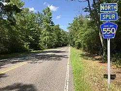 County Route 550 Spur, abbreviated CR 550 Spur, is a county highway in the U.S. state of New Jersey. The highway extends 4.84 miles (7.79 km) from Delsea Drive (Route 47) to Hoffman's Mill Road (CR 550) in Dennis Township. Between the two termini, the route passes through a portion of Maurice River Township.