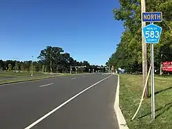 CR 583 begins at the border of Trenton and Ewing Township along two-lane undivided Princeton Avenue (southbound US 206) just northeast of the Prichard Street intersection. From the southern terminus, the road runs northeast concurrent with southbound US 206 through residential and commercial areas, forming the border between Ewing Township to the northwest and Trenton to the southeast. The road crosses CR 622, widening to four lanes before entering Lawrence Township at the CR 613 intersection. In Lawrence Township, Princeton Avenue comes to the CR 645 intersection that provides access to the Brunswick Circle and US 1 Business. Past here, the road intersects the northbound direction of US 206 at Lawrenceville Road, and southbound US 206 splits from CR 583 to join with the northbound direction.[2][3]