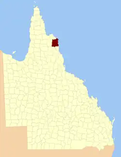 The county of Banks is one of the counties of Queensland, Australia, that existed before 1901.[1] The county is divided into civil parishes. It is located in Far North Queensland, and is named for Sir Joseph Banks, who with Captain James Cook landed in 1770 at a location within the county. Banks includes the towns of Cooktown, Lakeland and Laura.[2]