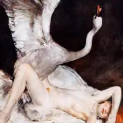"Cousins" adapts the painting Leda and the Swan by Paul Mathias Padua for its cover art.