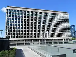 In 1878, the Crédit Communal established its head office at the corner of rue de Ligne and rue de la Banque in central Brussels, next to the then newly finished building of the National Bank of Belgium. That building was eventually demolished and replaced in the 1970s by a complex designed by prominent architect Marcel Lambrichs, presenting a neoclassical stone-faced front towards the National Bank and modern curtain-wall façades on the other sides.[4][5]