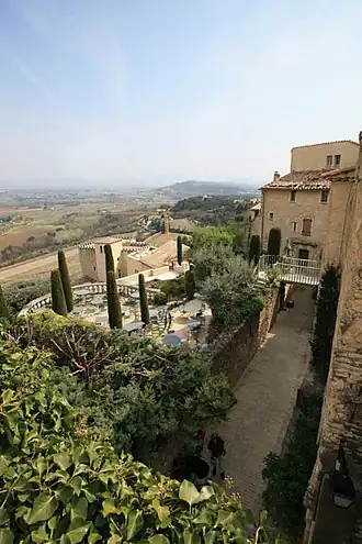 Like many of the older villages in the region, it was built on a hilltop for defensive purposes and to provide more farmland on the plains below. It is a small town, with only one paved road running through the middle. It contains little more than a café, a bakery, a hotel, a restaurant, a church, as well as a school.