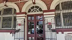 The bedrooms in the accommodation wings typically have low-waisted four panel doors with tilting fanlights. The rooms and corridors have pressed metal ceilings and a variety of plaster and timber archways. Exit doors commonly have coloured glass upper panels and flush lower panels.[1]