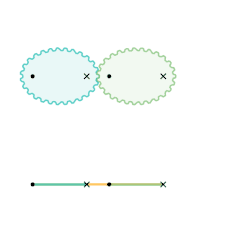 Because an antiparallelogram forms two congruent triangular regions of the plane, but loops around those two regions in opposite directions, its signed area is the difference between the regions' areas and is therefore zero.[7] The polygon's unsigned area (the total area it surrounds) is the sum, rather than the difference, of these areas. For an antiparallelogram with two parallel diagonals of lengths and , separated by height , this sum is .[4] It follows from applying the triangle inequality to these two triangular regions that the crossing pair of edges in an antiparallelogram must always be longer than the two uncrossed edges.[8]