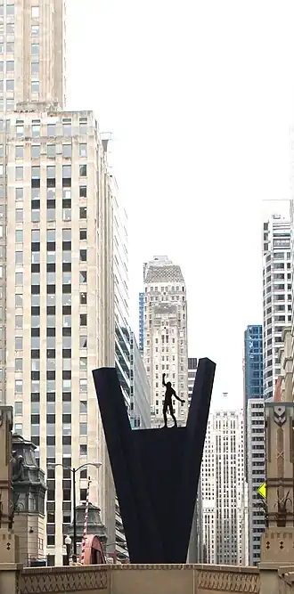 Crossing is a sculpture by Hubertus Von Der Goltz, installed on La Salle Street[1] in Chicago, Illinois.[2][3] The 25-foot-tall steel artwork has a statue of a man on top of a V-shaped structure.[4] Installed in 1998,[5] it is the only extant permanent work from the 17th annual International Sculpture Conference hosted by Chicago.[6]