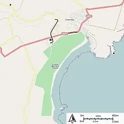 Map of the route of the Cruden Bay Hotel Tramway. The railway station was at the north end of the route, and the hotel at the south.