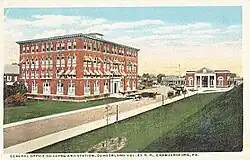 During the 1870s feeder lines such as the Mont Alto Railroad were added in the Cumberland Valley to gain access to iron ore deposits. In 1873 the railroad extended south from Hagerstown to the Potomac River, and reached Martinsburg, West Virginia via the Martinsburg and Potomac Railroad.[10] The Mechanicsburg Pennsylvania Railroad Station was built about 1875.[11] In 1889, the Martinsburg and Potomac's line was extended to Winchester, Virginia, at the head of the Shenandoah Valley, under the Cumberland Valley and Potomac Railway, to be operated by the CVRR. The Cumberland Valley was to have a junction with the South Pennsylvania Railroad in Newville, but the ambitious South Penn ran into financial difficulties during its construction and was never completed.