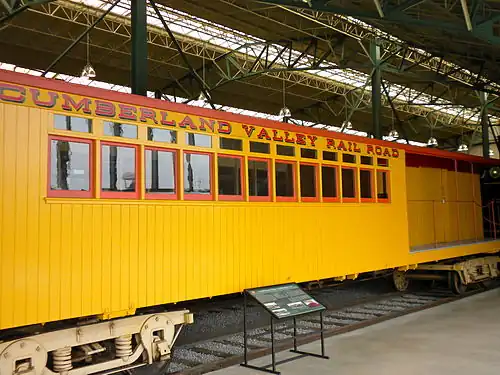 The Cumberland Valley Railroad (reporting mark CVRR)[1] was an early railroad in Pennsylvania, United States, originally chartered in 1831 to connect with Pennsylvania's Main Line of Public Works. Freight and passenger service in the Cumberland Valley in south central Pennsylvania from near Harrisburg to Chambersburg began in 1837, with service later extended to Hagerstown, Maryland, and then extending into the Shenandoah Valley to Winchester, Virginia.[2] It employed up to 1,800 workers.[3]