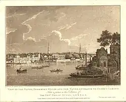 View of the Savoy, Somerset House and the Water Entrance to Cuper's Garden, 1808