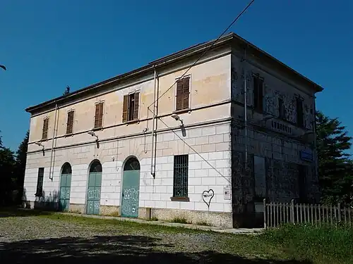 The station first entered service in 1905 at the opening of the first section of the Santhià-Arona line between Santhià and Borgomanero.[1] Railway traffic was initially controlled via telephone, through which the dirigente unico would coordinate manoeuvres with the station master.[2]