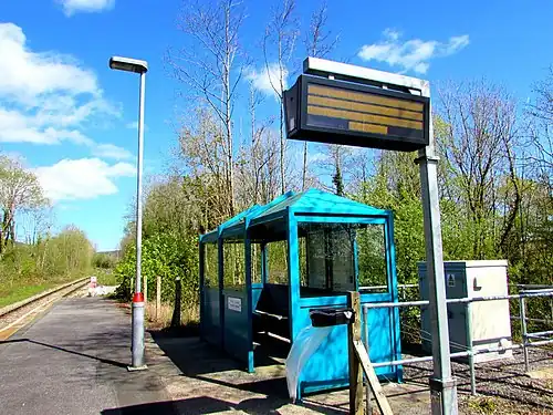 The station had no facilities whatsoever for many years but a shelter has recently been provided along with a customer help point and CIS screen.[2]