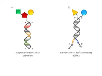 Fig. 1 DNA-encoded library displaying chemical compounds Schematic representation of DNA-encoded library displaying chemical compounds directly attached to oligonucleotides. a) Library generated by “stepwise combinatorial” assembling presenting a single oligonucleotide covalently linked to a putative binding molecule. b) Library construct in “combinatorial self-assembling” fashion (Encoded Self-Assembling Chemical library). Multiple pairing oligonucleotides display a covalently linked binding molecule