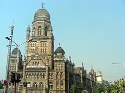 The Municipal Corporation headquarters or the Brihanmumbai Municipal Corporation Building (BMC) was designed as V–shaped structure in the Gothic Revival style of architecture by the architect F W Stevens and built in 1893. Notable features of the building are its 255 ft (77.7 m) tall tower with the central dome, rising to a height of 71.5 m (234.6 ft).[15]