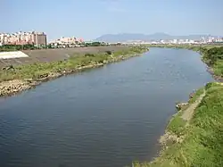 The Dahan River (Chinese: 大漢溪, also spelled Tahan) is a river in northern Taiwan. It originates in Hsinchu County and then flows through Taoyuan City and New Taipei City for 135 km, before it joins Xindian River in Taipei to form the Tamshui River. The upper reaches of the Dahan are also known as Takekan Creek (Chinese: 大嵙崁溪; Pe̍h-ōe-jī: Toā-kho-khàm-khe) or Taigang Creek (Chinese: 泰崗溪). An alternative historical name for the Dahan is the Shihmen River (Chinese: 石門溪).