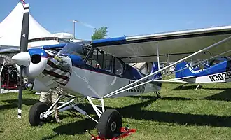 The Super 18 is the kit derivative of the type certified Super 18 Model S18-180 that is manufactured by a separate, but affiliated company, Super 18. The Dakota Cub Super 18 features a strut-braced high wing, a two-seats-in-tandem enclosed cockpit that is 28 in (71 cm) wide, fixed conventional landing gear and a single engine in tractor configuration.[1]