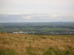 Dalry (from Scottish Gaelic: Dail Ruighe, 'the haugh at the slope'[2]) is a small settlement on the Rye Burn.[3] Its history has signs of early inhabitants in the area; the remains of an ancient fort, made of three concentric round walls, can be found on the summit of Carwinning Hill to the North of Dalry, west of the B784 to Largs.