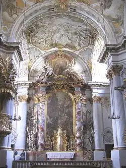 It was commissioned in the 18th century by Elector Charles Albert (later the Emperor Charles VII) and the cornerstone was laid in 1733. A monastery in the legal form of a chapter of nuns was set up. The architect was Johann Baptist Gunetzrhainer, while the Asam brothers were responsible for the interior. The women's collegiate church was consecrated in 1735.[2]