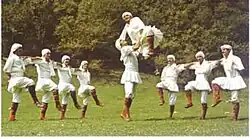 After the end of the tour the Life commented: "A hundred years ago on the rugged roads of Macedonia, bands of brigands used to plunder the caravans of rich merchants and, like Robin Hood, pass on some of their spoils to the poor ... this spring, the Yugoslav National Folk Ballet is making a first, and highly successful tour of the U.S ... Together they make as vigorous a display of dancing as the U.S. has ever seen."[60][61][62][3]